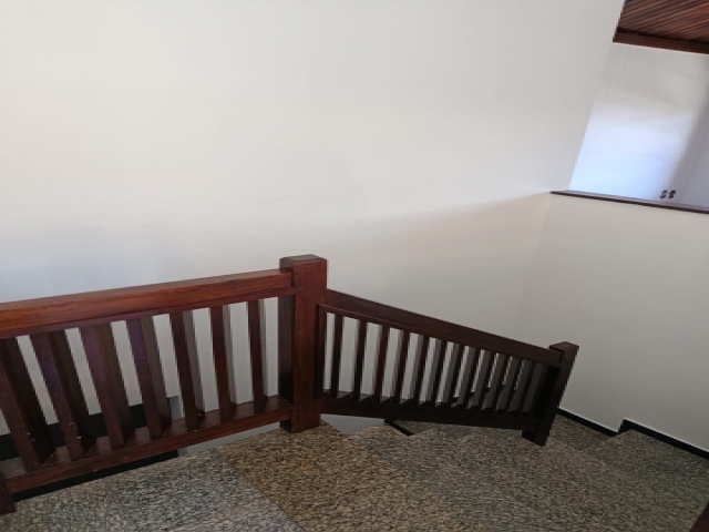 ✔️ Escada de mármore com guarda-corpo de madeira